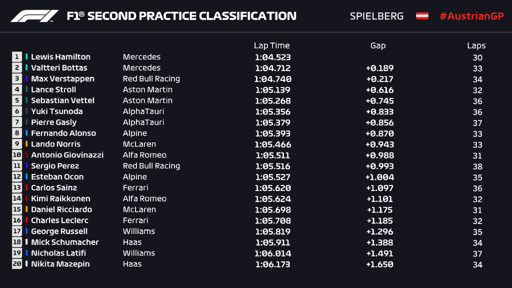I den andre treningen så vi flere runder som lignet mer på kvalifisering – men før de siste forsøkene skulle settes kom regnet til Red Bull Ring.