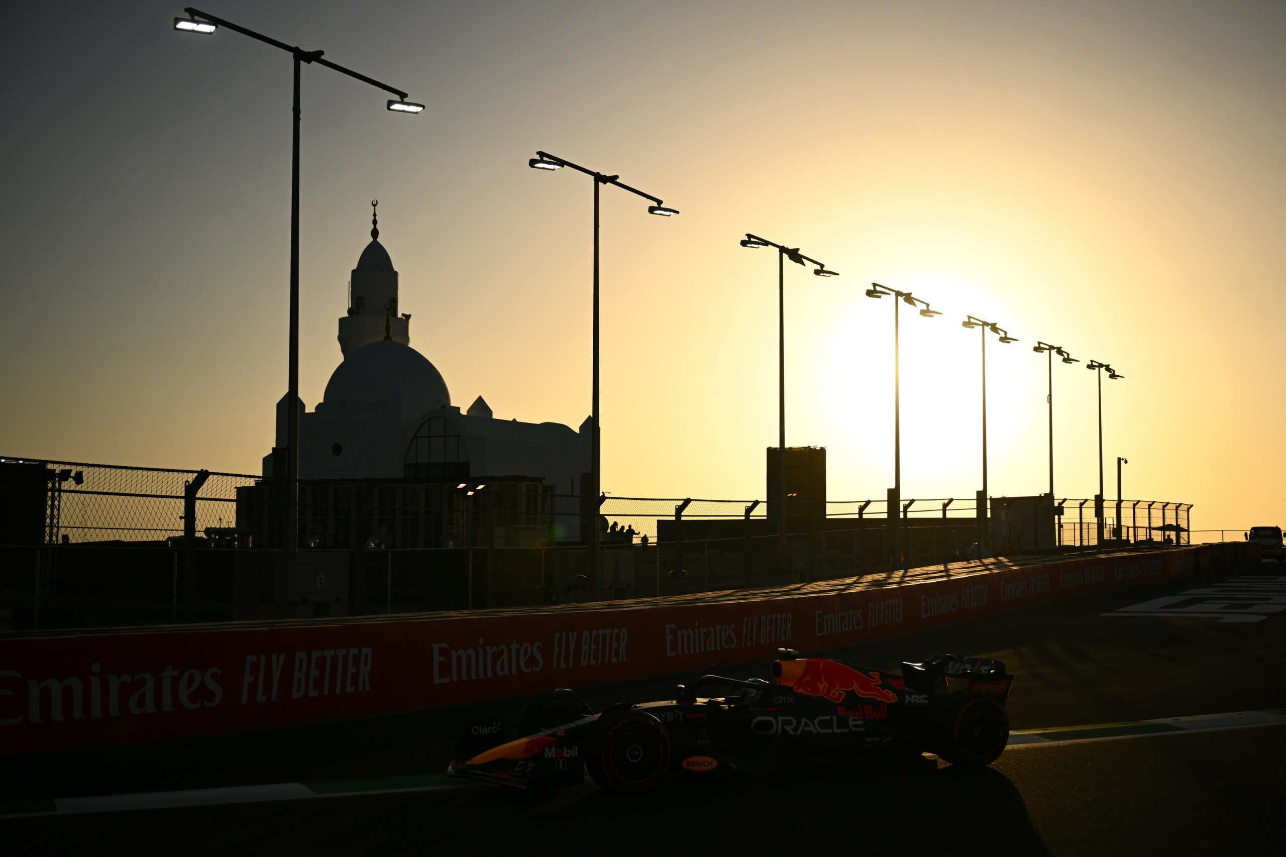 JEDDAH, SAUDI ARABIA - MARCH 25: Sergio Perez of Mexico driving the (11) Oracle Red Bull Racing RB18 on track during practice ahead of the F1 Grand Prix of Saudi Arabia at the Jeddah Corniche Circuit on March 25, 2022 in Jeddah, Saudi Arabia. (Photo by Clive Mason/Getty Images) // Getty Images / Red Bull Content Pool // SI202203250487 // Usage for editorial use only //