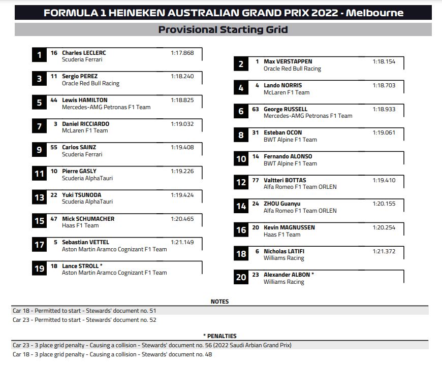 For Leclerc og Zhou sier dommerne at årsaken til tidstapet var for å unngå å hindre andre førere, mens for Tsunoda sier de samme dommerne at minimumstiden ble brutt uten noen god grunn og tildelte ham to prikker på superlisensen.