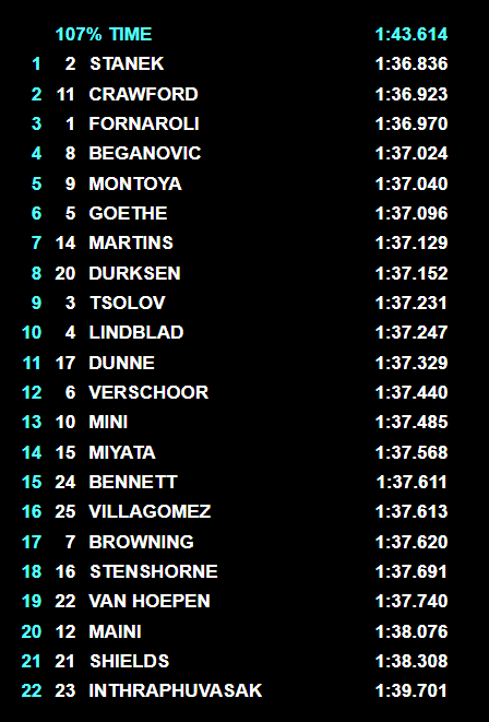 Det var ble en krevende kvalifisering for Martinius Stenshorne i en kvalifisering der Roman Stanek var raskest, foran Jak Craford og årets F2-mester, Fornaroli. Stenshorne måtte nøye seg med en litt skuffende 18. plass.