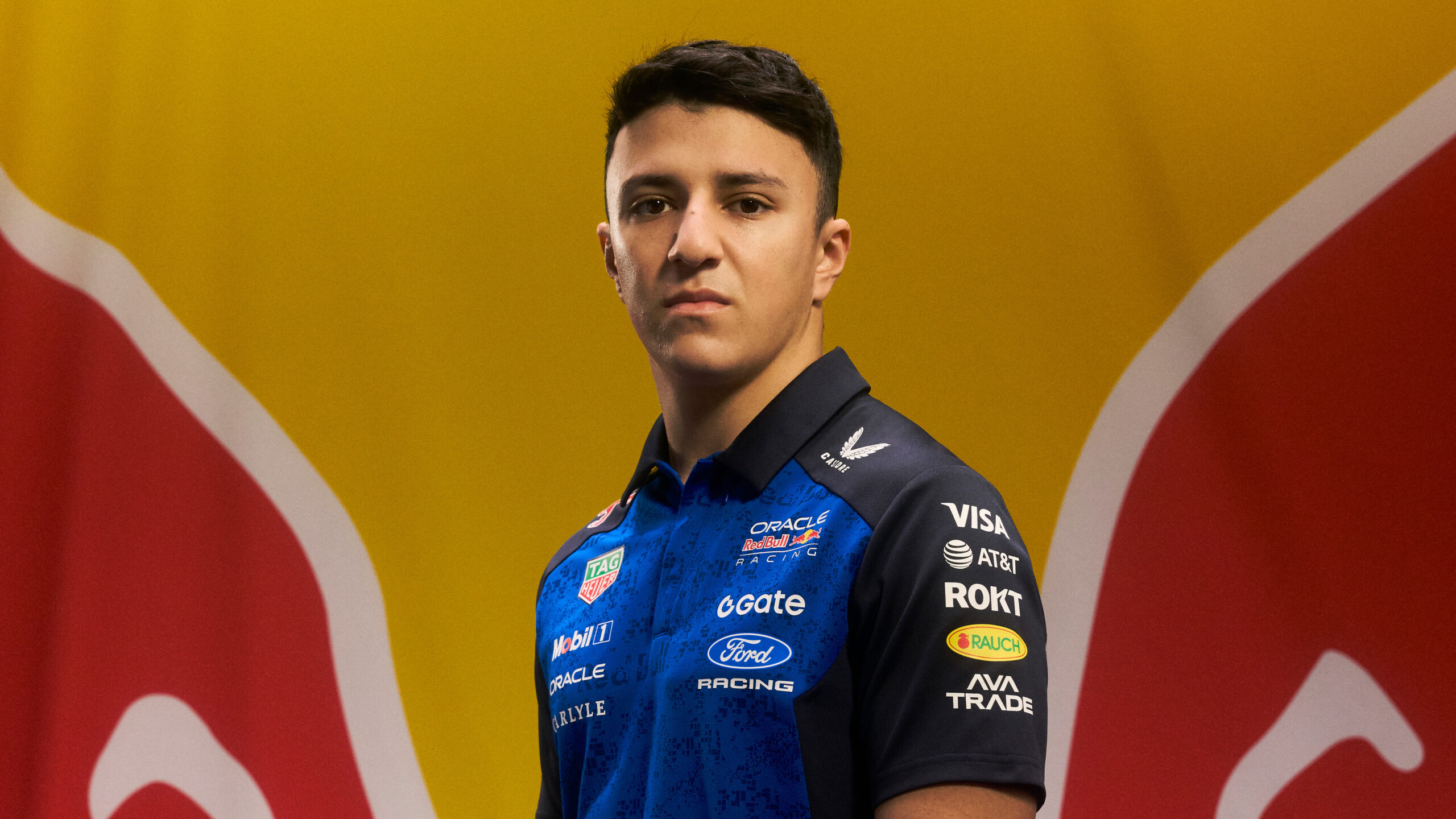 Isack Hadjar model the new Oracle Red Bull Racing team kit for January 15, 2026 in Detroit, USA // Khalil Musa / Red Bull Content Pool // SI202601150875 // Usage for editorial use only //